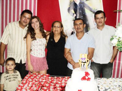 Na foto ao lado, dona Dolores e os filhos, Erisvaldo, Nivaldo e Evaldo, e a nora Polyana.